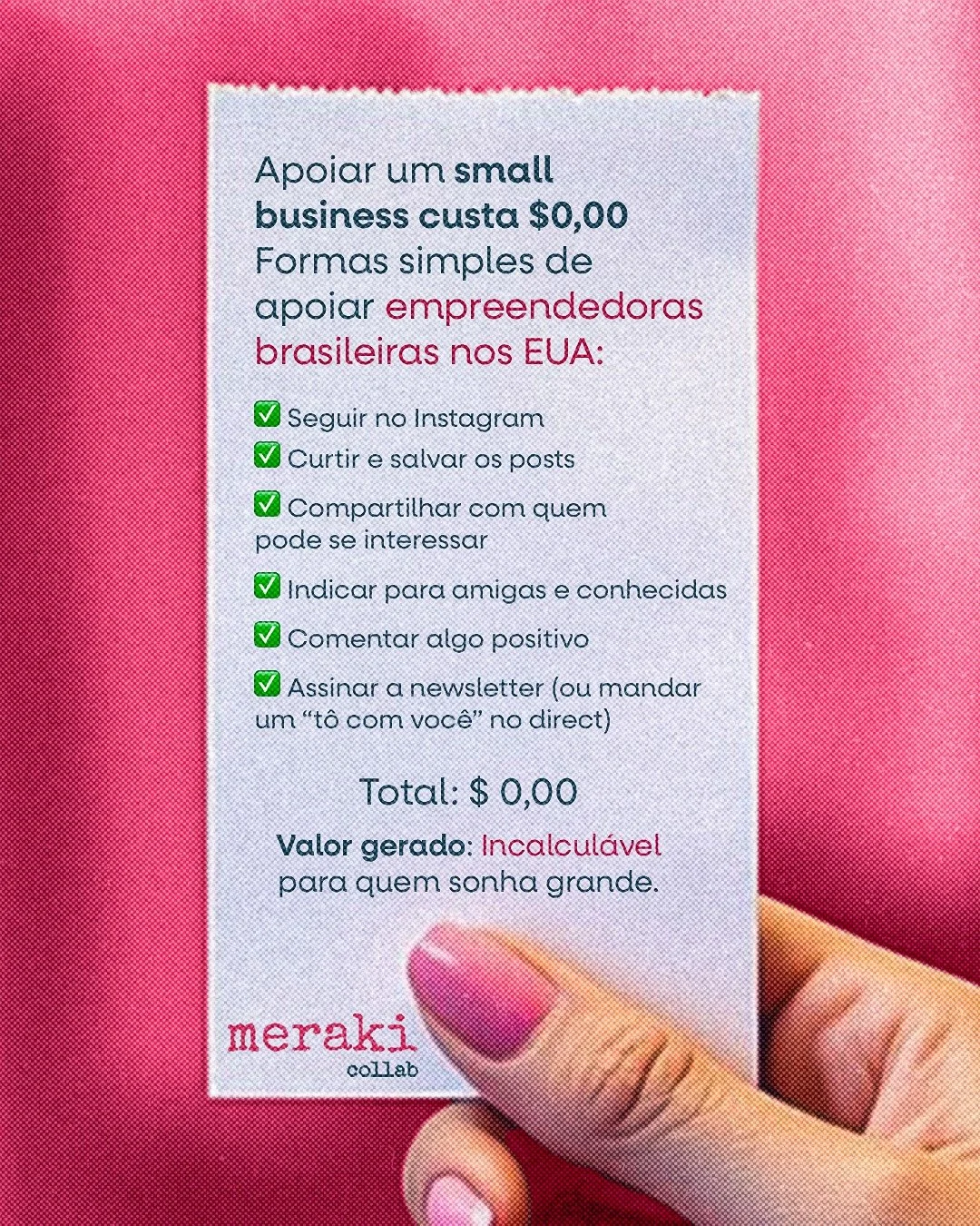 Aqui, você encontra mentoria em grupo, consultoria de conteúdo e cursos práticos. Além disso, promovemos workshops online e gratuitos para conectar brasileiras nos EUA. Tudo pra te ajudar a ganhar o conhecimento que preciosa para tirar projetos do papel, organizar ideias e transformar seu business em uma realidade POSSÍVEL, sustentável e, principalmente, com a sua cara.